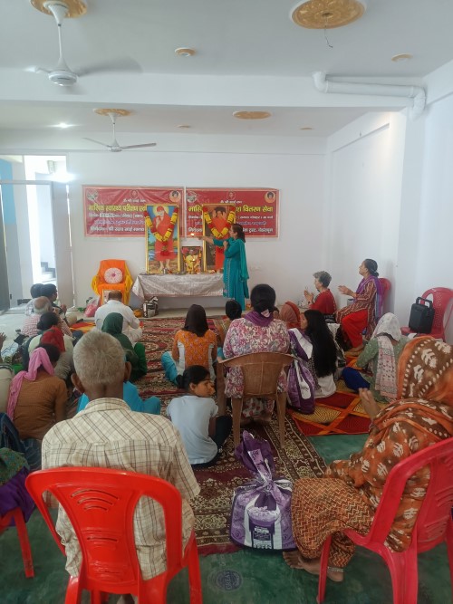 c)  At Nagesh Mandir Dharawali On 20 April23 on the occasion Aradhna Diwas of Sri Sathya Sai Baba. More than 200 persons mostly ladies took advantage of the camp. Free medicines were provided to all.